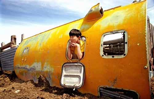C’est un photo prise au Kazakhstan, la poubelle de l’espace des russes. Tous les débris retombent dans cette région et les habitants s’en font des maisons…