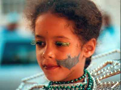 J’ai pris cette photo lors du carnaval de Guadeloupe, à Pointe-à-Pitre en 2001. Lou avait 6 ans et appartenait au groupe groupe Guimbo All Stars, du nom de ces petits vampires (inoffensifs) qui pulullent aux Antilles (les guimbos). J’en lui en avais dessiné un sur la joue.